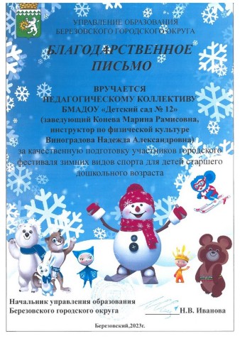 2023 БП УО За качественную подготовку участников городского фестиваля зимних видов спорта